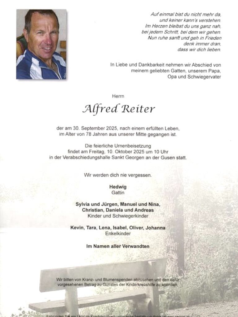 Sie sind hier: Startseite » Kondolenzseite » Alfred Reiter